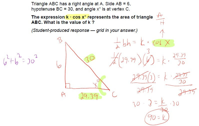 One of the most consistent SAT patterns right now is the right triangle setup where you’re asked to express a missing side using a trig function.